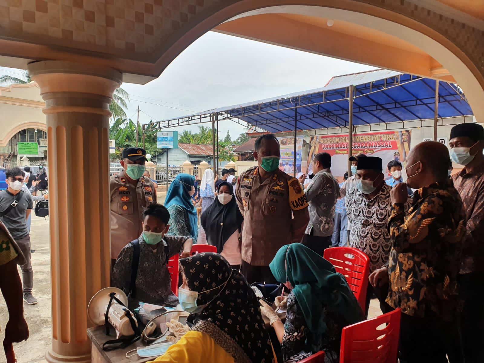 “Alhamdulillah setiap hari antusias masyarakat yang hendak divaksin bertambah terus, dalam sehari bisa mencapai 1000 orang lebih yang divaksin. Kali ini terlihat pantauan kami pada Jum’at (8/10), di Mapolsek Limbur Lubuk Mengkuang peserta membludak, dengan jumlah warga yang divaksin sebanyak 1354 orang sedangkan ditunda sebanyak 10 orang dengan kondisi yang belum memungkinkan untuk divaksin”, Ujar Guntur.