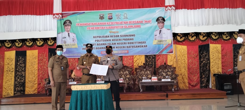 Tiga perguruan tinggi negeri yang ada di Sumbar itu diantaranya IAIN Bukittinggi, Politeknik Negeri Padang dan IAIN Batusangkar. Penandatanganan MOU itu dilakukan langsung oleh rektor dari masing-masing perguruan tinggi dan dilakukan langsung oleh Bupati Sijunjung Benny Dwifa, Kapolres AKBP Muhammad Ikhwan Lazuardi, Sekdakab Zefnihan serta diikuti jajaran OPD yang ada di lingkungan Pemkab Sijunjung.