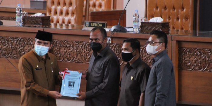 NARASIJURNAL.COM, DHARMASRAYA – Bupati Dharmasraya, Sutan Riska Tuanku Kerajaan, diwakili Sekretaris Daerah, Adlisman, menghadiri Rapat Paripurna DPRD terkait penyampaian Rancangan Peraturan Daerah (Ranperda) inisiatif DPRD Kabupaten Dharmasraya. Rapat paripurna yang digelar di Ruang Rapat Utama Sekretariat DPRD, Senin (11/10/21), itu dipimpin Ketua DPRD, Paryanto, dan tampak dihadiri para anggota DPRD serta Kepala Perangkat Daerah di lingkup Pemerintah Kabupaten Dharmasraya.