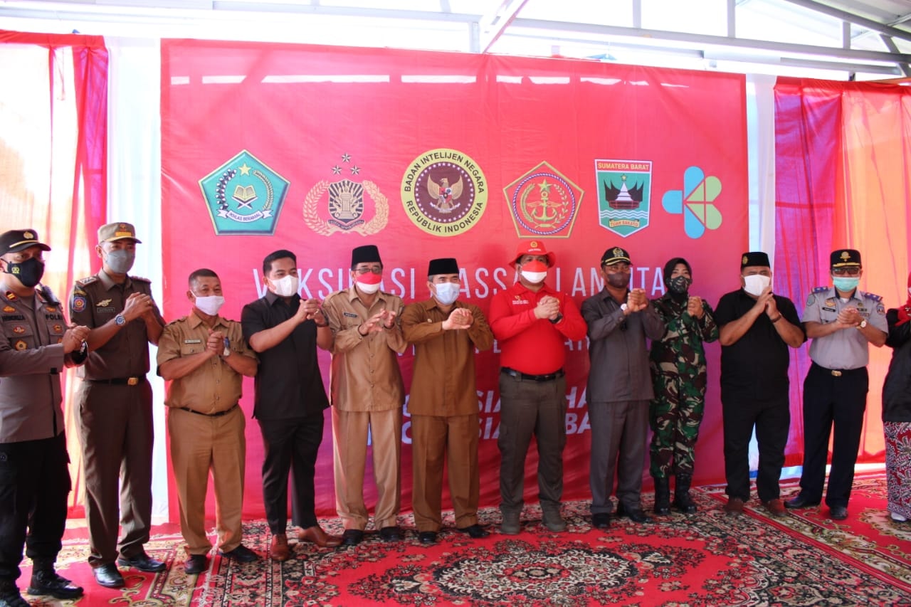 NARASIJURNAL.COM, DHARMASRAYA – Bupati Dharmasraya, Sutan Riska Tuanku Kerajaan yang diwakili Sekretaris Daerah, Adlisman, meninjau pelaksanaan Vakinasi Massal Lanjutan bagi Pelajar dan Santri, di SMA Negeri 2 Pulau Punjung, Selasa (12/10/21). Peninjauan ini dilakukan bersama unsur Forkopimda dan Badan Intelijen Daerah (BINDA) Provinsi Sumatera Barat.