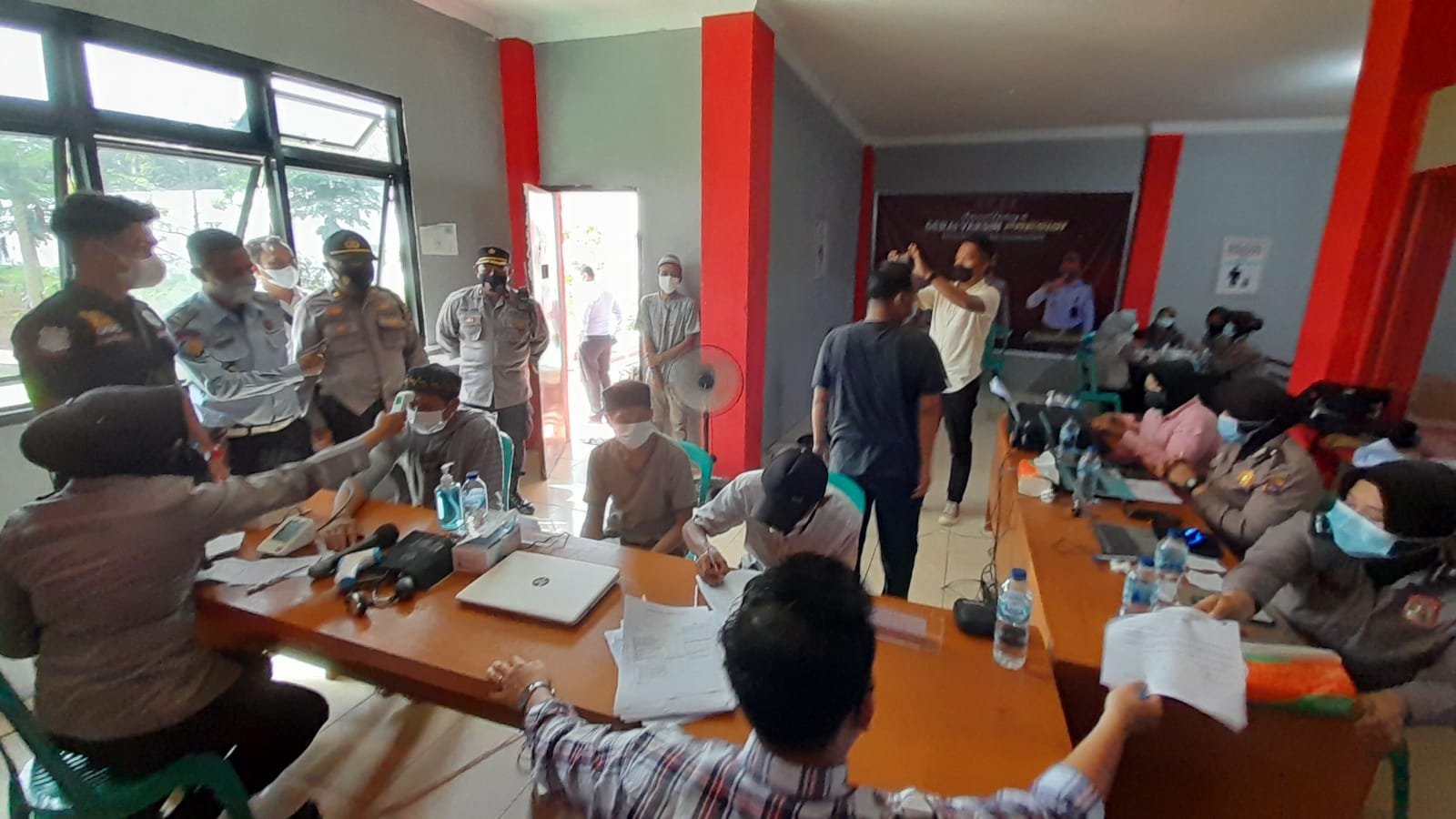 Pantuan di lapangan puluhan warga binaan Lapas kelas III Dharmasraya serta warga sekitar lingkungan Lapas tersebut melakukan Vaksinasi dilakukan oleh tim medis kesehatan polres Dharmasraya.