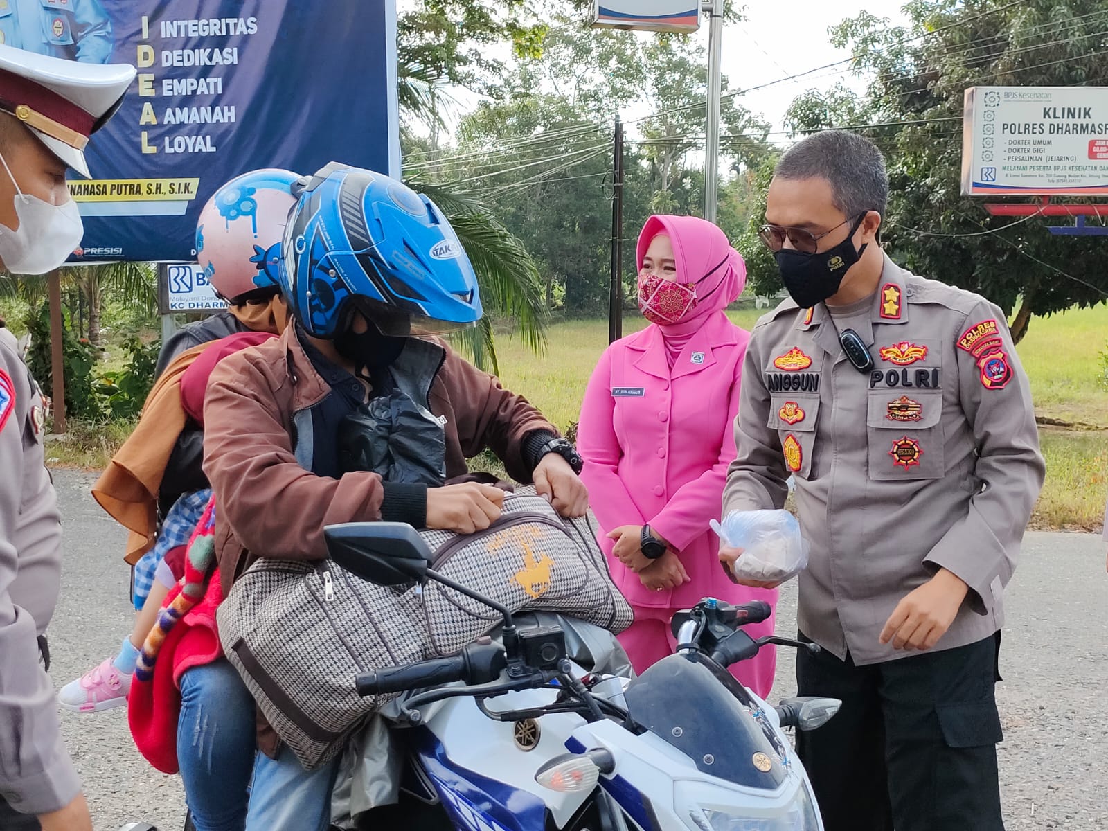 Terpisah, salah satu masyarakat yang melintas Rusdi (48), bersama istrinya, merupakan warga Jambi yang saat ini berdomisili di Riau, dirinya sangat bersyukur atas rezeki berupa nasi bungkus dan sarapan pagi diberikan Kapolres Dharmasraya kepada mereka.