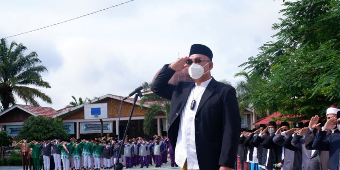 NARASIJURNAL.COM, BUNGO – Pondok Pesantren Diniyyah Al-Azhar Bungo Jambi menggelar serangkaian upacara peringatan Hari Santri 2021 yang dilaksanakan, Jumat (22/10) di lapangan Pondok Pesantren. Hadir dalam kegiatan, Direktur Pendidikan Diniyyah Al-Azhar Bungo Jambi Ustadz H.M. Hafizh El-Yusufi, S.Pd.I, M.M, Wakil Ketua Yayasan Diniyyah Al-Azhar Bungo Jambi Ustadz H.M Zulfadli El-Yusufi, Lc, M.Pd, Syaikh Ali Abdul ElMoety Shaban, para kepala Unit Pendidikan, Murabbi dan Murabbiyah, santri dan santriwati baik dari SD IT, SMP IT, MTs, dan MA Diniyyah Al-Azhar Bungo Jambi.