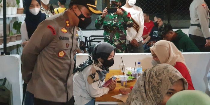 NARASIJURNAL.COM, Bungo – Kali ini Polres bersama TNI menggandeng Bujang Gadis Milenial Bungo, mengunjungi cafe cafe yang ada di Kota Muarabungo, guna mengecek pengunjung yang belum divaksin. (23/10/2021) Malam.