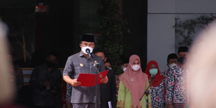 NARASIJURNAL.COM, DHARMASRAYA – Hari Sumpah Pemuda ke 93 di Kabupaten Dharmasraya diperingati dengan Upacara Bendera di halaman Kantor Bupati Dharmasraya, Kamis (28/10/21). Bupati Dharmasraya, Sutan Riska Tuanku Kerajaan, bertindak sebagai inspektur dalam upacara yang diikuti oleh jajaran ASN, TNI, Polri, Mahasiswa dan Pelajar tersebut. Terlihat pula hadir Forkopimda, pejabat teras dan segenap Kepala Perangkat Daerah.