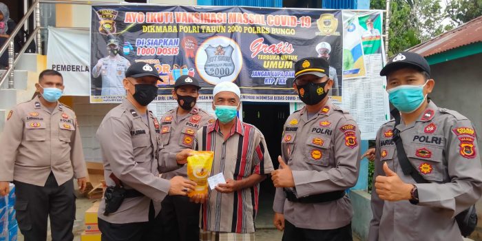 NARASIJURNAL.COM , Bungo – Membantu program pemerintah dalam percepatan vaksinasi Nasional. Dikmaba Polri tahun 2000 Polres Bungo terus giat melakukan vaksinasi masal.