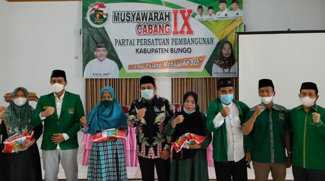 NARASIJURNAL.COM, Bungo – Bertempat di Hotel Amaris Mura Bungo, Minggu (31/10/2021). Musyawarah cabang (Muscab) ke IX, Dewan Pimpinan Cabang (DPC) Partai Persatuan Pembangunan (PPP) kabupaten Bungo dibuka oleh Bupati Bungo H.Mashuri, dihadiri Ketua DPW PPP Provinsi Jambi M.Fadhil Arief beserta 17 PAC se kabupaten Bungo.