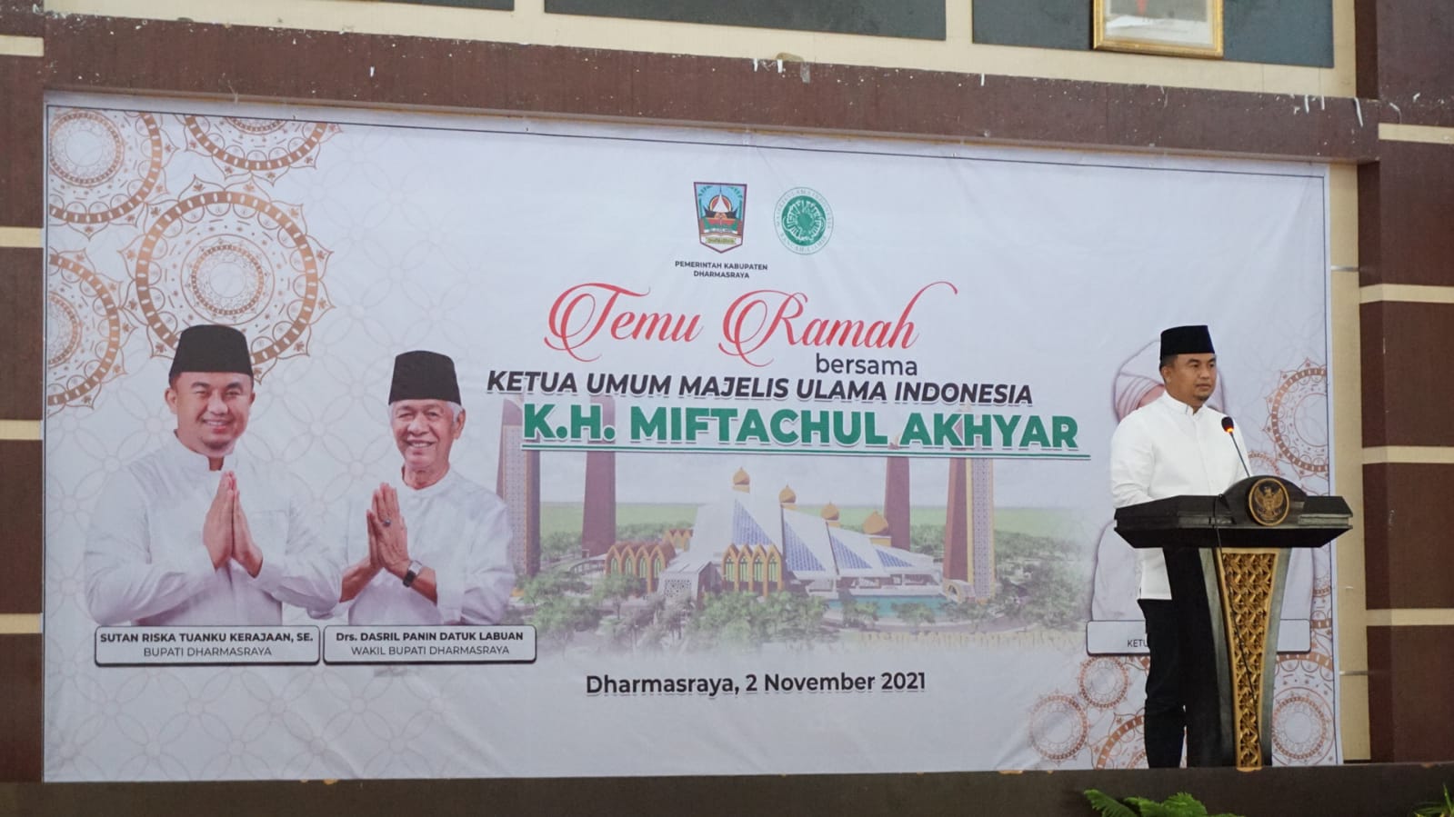 NARASIJURNAL.COM, DHARMASRAYA – Bupati Dharmasraya, Sutan Riska Tuanku Kerajaan menghadiri acara temu ramah dengan Ketua Umum Majelis Ulama Indonesia, KH Miftachul Akhyar sekaligus pembukaan Musda (Musyawarah Daerah) ke IV Majelis Ulama Indonesia Kabupaten Dharmasraya. Acara ini dilaksanakan di Auditorium kantor Bupati Dharmasraya, Selasa (2/11/21).