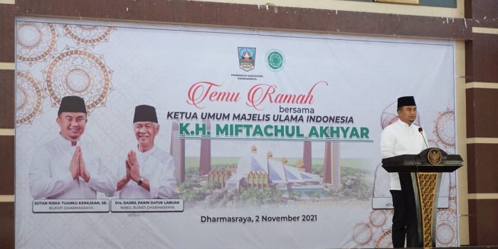 NARASIJURNAL.COM, DHARMASRAYA – Bupati Dharmasraya, Sutan Riska Tuanku Kerajaan menghadiri acara temu ramah dengan Ketua Umum Majelis Ulama Indonesia, KH Miftachul Akhyar sekaligus pembukaan Musda (Musyawarah Daerah) ke IV Majelis Ulama Indonesia Kabupaten Dharmasraya. Acara ini dilaksanakan di Auditorium kantor Bupati Dharmasraya, Selasa (2/11/21).