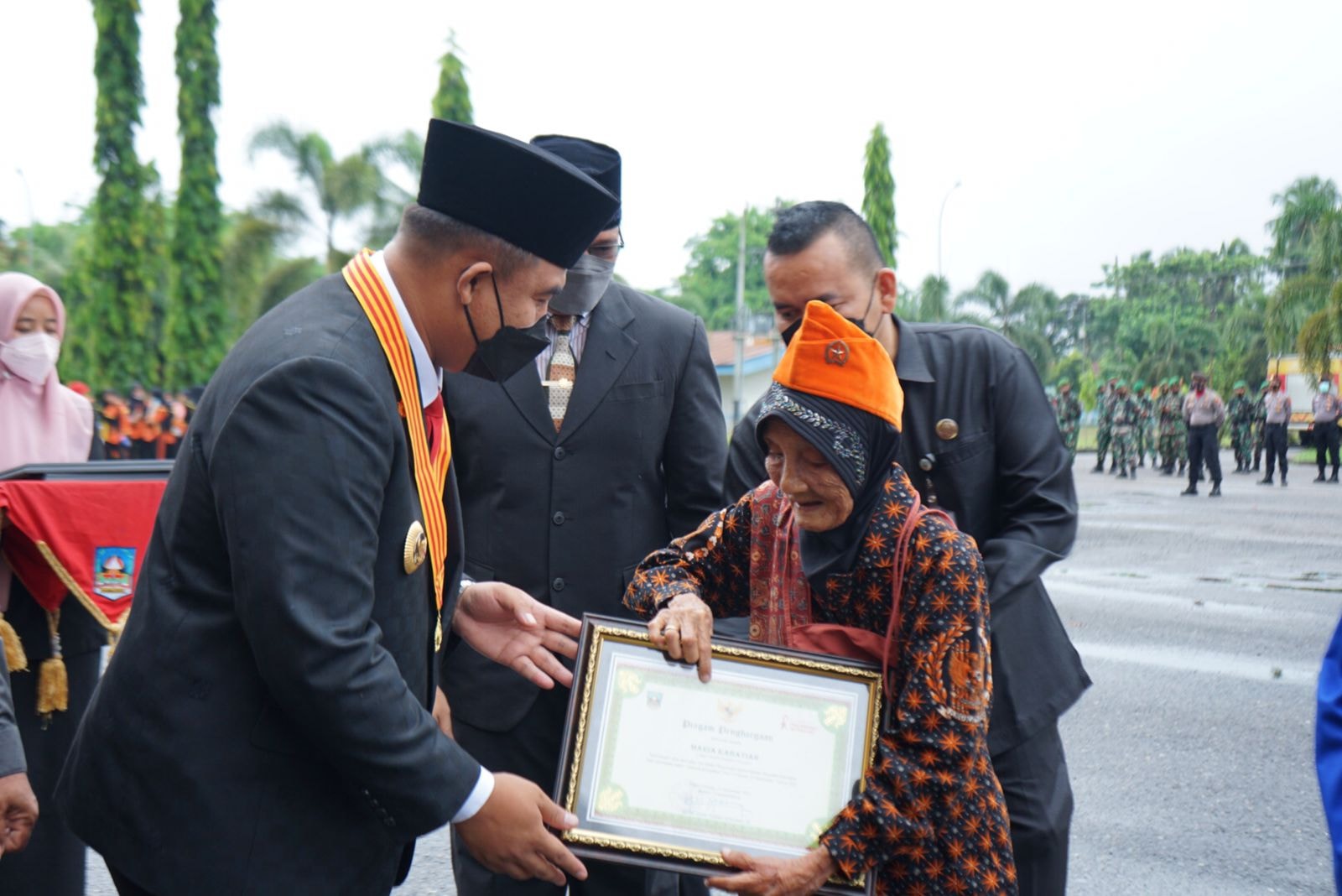 DHARMASRAYA – Bertepatan dengan momentum peringatan Hari Pahlawan, Pemerintah Kabupaten Dharmasraya memberikan penghargaan kepada Veteran yang ada di Dharmasraya. Penghargaan tersebut diserahkan langsung oleh Bupati Dharmasraya, Sutan Riska Tuanku Kerajaan, jelang upacara peringatan Hari Pahlawan di halaman Kantor Bupati Dharmasraya, Rabu (10/11/21).