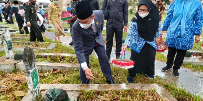 NARASIJURNAL.COM, SUNGAI PENUH – Ketua DPRD Sungai Penuh, Fajran Nahru mengikuti upacara peringatan hari Pahlawan di Taman Makam Pahlawan Bhakti Semumu, Kecamatan Depati Tujuh, Kerinci, Rabu (10/11/2021). Usai prosesi upacara, Fajran menyempatkan diri menaburkan bunga di makam pahlawan.