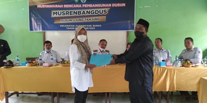 NARASIJURNAL.COM, Bungo – Pemerintah dusun (Pemdus) Ujung Tanjung kecamatan Jujuhan telah menuntaskan Musrbangdus tahun anggaran 2022. Rapat itu digelar di gedung Madrasah Ujung Tanung, Rabu (24/11/2021).