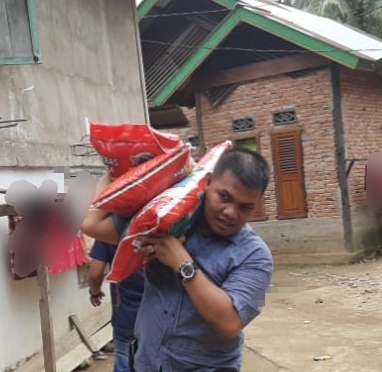 Penyaluran 27 paket sembako beserta uang tunai dari Brigpol Maidani juga selaku Owner Athaya Garden turun langsung dari rumah ke rumah dengan niat hati yang tulus.