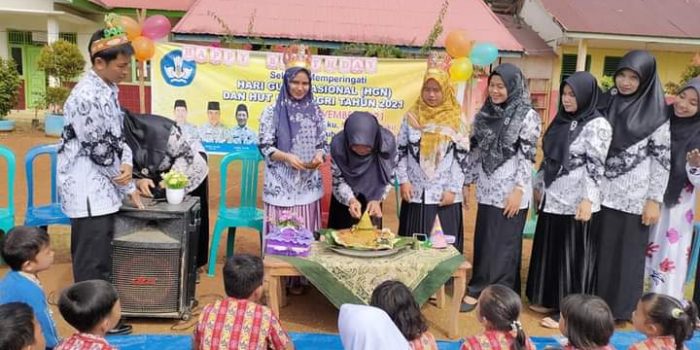 Kepala SDN 163 Penenun Rantau Ikil Asnidar menuturkan, dalam memperingati hari guru digelar beragam kegiatan, seperti syukuran dengan memotong tumpeng.