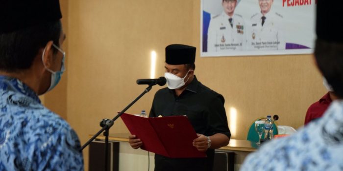 DHARMASRAYA – Bupati Dharmasraya, Sutan Riska Tuanku Kerajaan, kembali melakukan penyegaran pejabat di lingkungan Pemerintah Kabupaten Dharmasraya. Hari ini, Jum’at (26/11/21), bertempat di Aula Kantor Bupati Dharmasraya, sebanyak 24 pejabat dilantik oleh bupati. Empat diantara pejabat yang dilantik adalah pejabat tinggi pratama atau eselon II, sisanya pejabat administrator, pejabat pengawas, dan Kepala UPT Puskesmas.