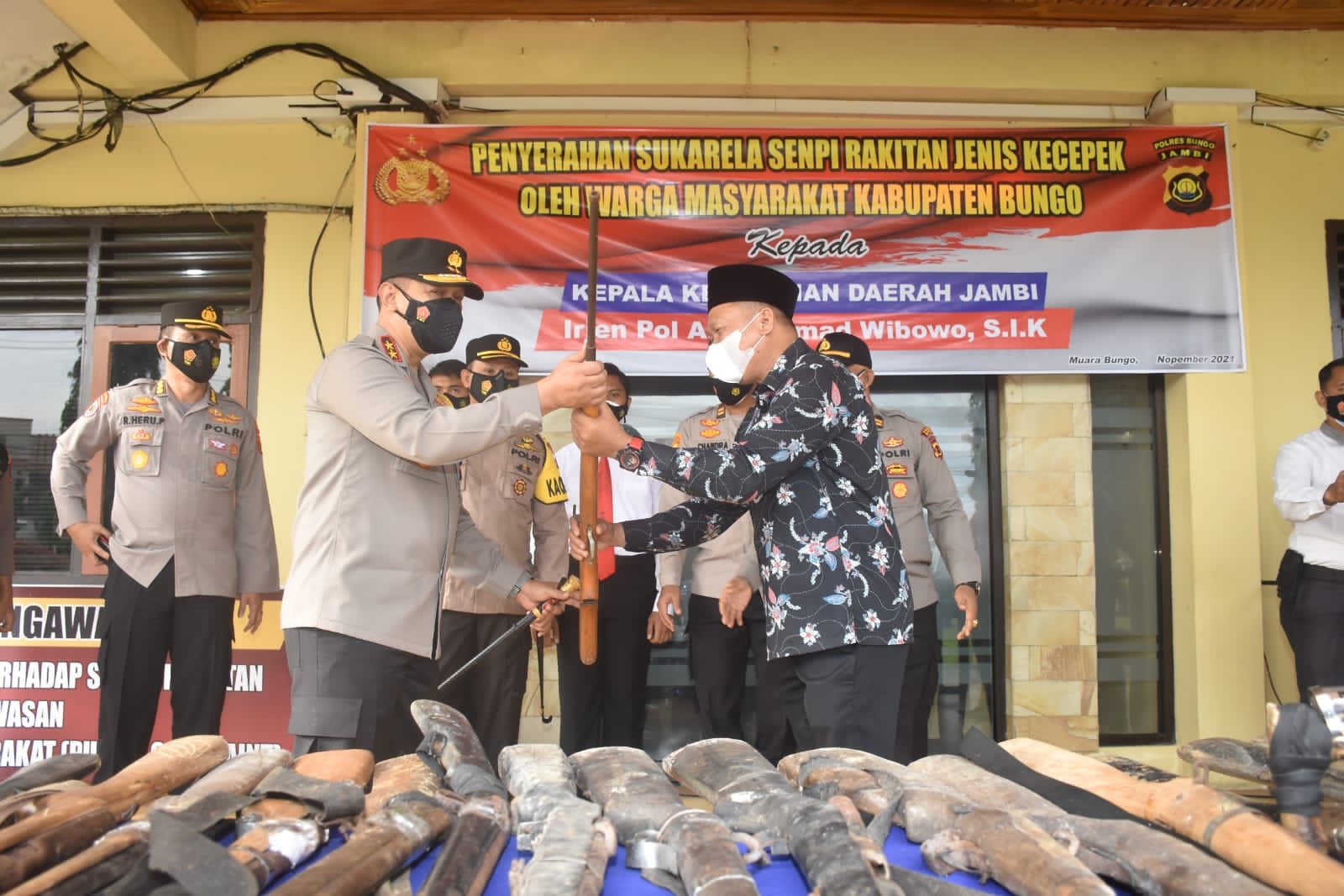 Sementara itu, Kapolres Bungo AKBP Guntur Saputro menambahkan, sebanyak 25 pucuk kecepek yang diserahkan melalui tangan Kapolda Jambi, merupakan bagian kesadaran warga Kabupaten Bungo.