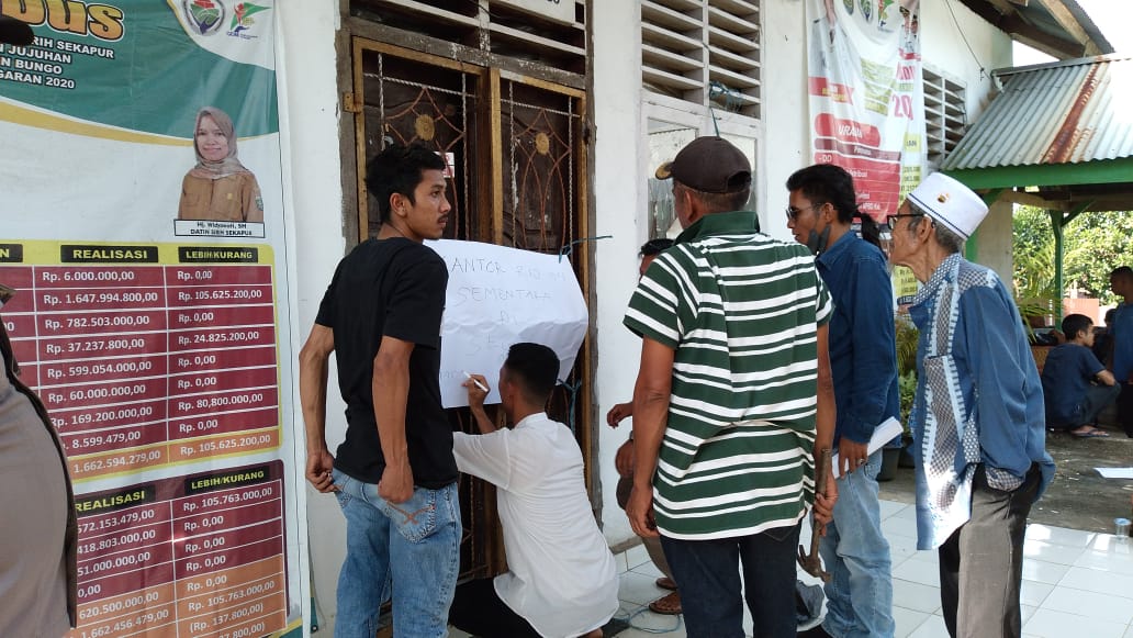 Warga Kesal Segel Kantor Rio, Diduga Rio Sirih Sekapur Gelapkan Dana PAD