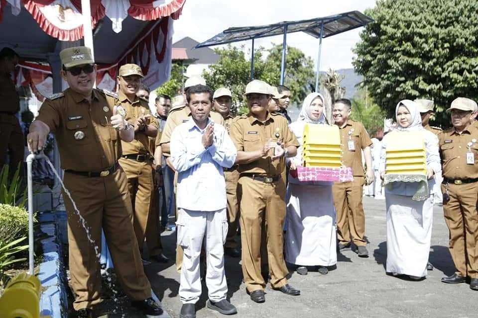 Bantuan tersebut diserahkan Wako Ahmadi pada saat apel bersama dengan karyawan/i Perumda Tirta Khayangan di Halaman Perumda Tirta Khayangan, Senin (29/8).