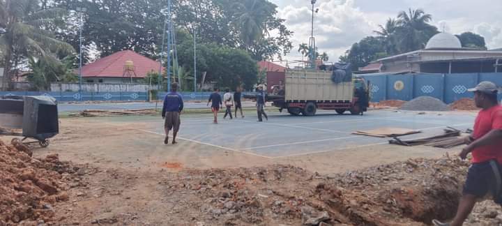 Dari pantau di lapangan pembangunan Gedung Lapanga Tenis dikerjakan oleh Dinas Pekerjaan Umum dengan no kontrak 10/CK/PUPR/BUNGO/2022 dengan besaran anggaran Rp. 1.485.578.000.00 (Satu Miliar Empat Ratus Delapan Enam Juta Lima Ratus Tujuh Puluh Delapan Ribu Rupiah) dikerjakan oleh kontraktor dari Perusahaan CV. PAYE MORE RAWANG masa pelaksana 143 Hari Kalender. (NJ)