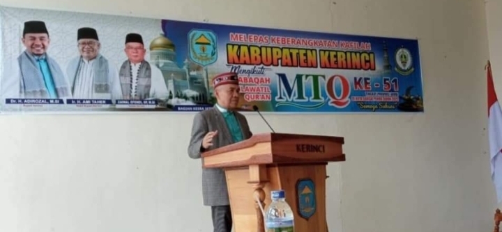 NARASIJURNAL.COM, –  Bupati Kerinci Adirozal melepas Kafilah Musabaqah Tilawatil Quran (MTQ) tingkat Provinsi Jambi tahun 2022 di Kota Sungai Penuh, Minggu (30/10/2022), di Aula Kantor Bupati.