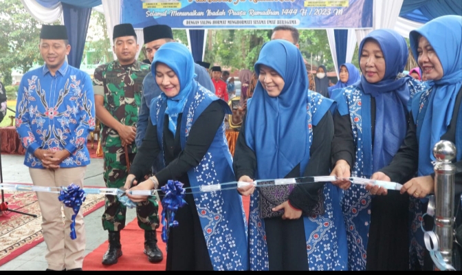 Pembukaan Pasar Bedug, Pasar tumpah dan Bazar Ramadhan ini pengguntingan pita yang di gunting oleh ketua TP PKK Kabupaten Bungo DR.Hj.Verawati Mashuri.,M.Pd yang di dampingi oleh ketua GOW, DWP beserta anggota.