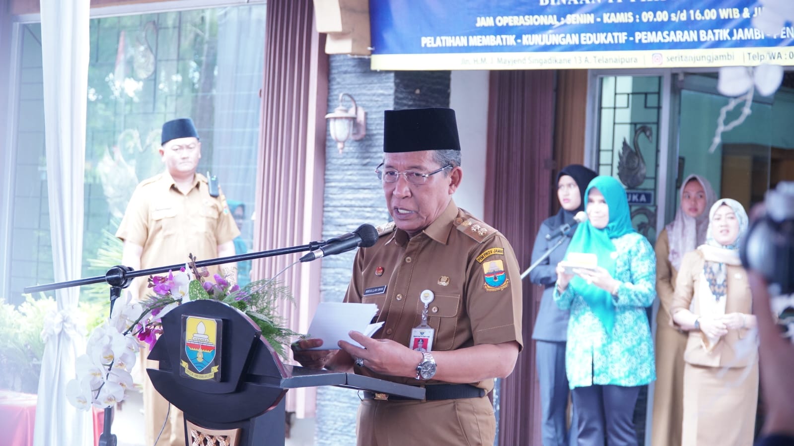 NARASIJURNAL.COM, –  Wakil Gubernur Jambi, Drs.Abdullah Sani, M.Pd.I membuka Pasar Murah Ramadhan 1444 H yang diselenggarakan Tim Penggerak Pemberdayaan Dan Kesejahteraan Keluarga (PKK) Provinsi Jambi. Kegiatan ini dilaksanakan di halaman Kantor TP PKK Provinsi Jambi, Selasa, 28 Maret 2023. Turut Hadir pada kesempatan ini Ketua TP-PKK Provinsi Jambi Hj.Hesti Haris, dan Ketua Organisasi Wanita lainnya.