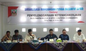 NARASI JURNAL.COM, DHARMASRAYA – Menindaklanjuti pembahasan 3 (Tiga) Rancangan Peraturan Daerah (Ranperda) Kabupaten Dharmasraya, melalui Panitia Khusus (Pansus) III DPRD sampaikan sosialisasi terkait Ranperda Ketenagakerjaan. Sosialisasi Ranperda ini dipimpin oleh Ketua Pansus III Purwanto,S.Ag yang didampingi oleh Wakil Ketua beserta Anggota Pansus III DPRD.