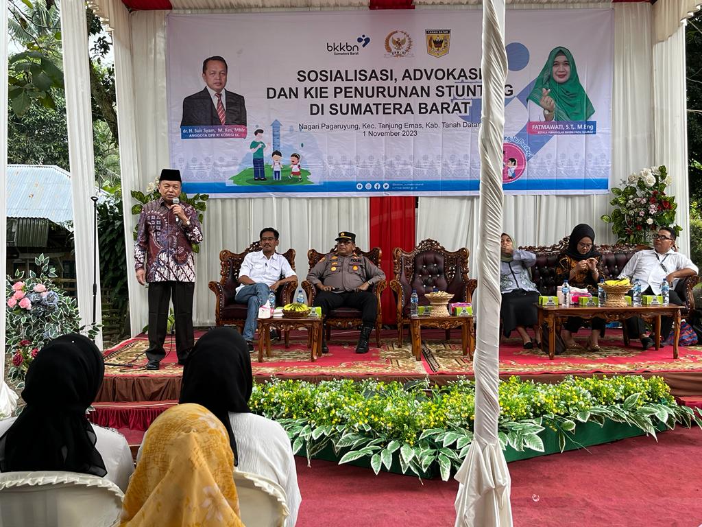 NARASI JURNAL, TANAH DATAR – Anggota DPR RI Komisi IX, dr.Suir Syam secara berkesinambungan melakukan pencegahan dan penurunan kasus stunting pada anak. Dirinya besama mitra kerjanya BKKBN mengajak ribuan masyarakat di Sumatera untuk memerangi kekurangan gizi pada anak guna terwujudnya keluarga sejahtera untuk Indonesia emas 2045.