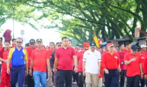 NARASI JURNAL.COM, DHARMASRAYA – Ketua DPRD Kabupaten Dharmasraya, Pariyanto beserta unsur pimpinan DPRD Kabupaten Dharmasraya ikut serta memeriahkan peringatan Hari Ulang Tahun ke-20 Kabupaten Dharmasraya dilaksanakan beberapa rangkaian kegiatan. Hari ini, Selasa, (2/1/24) menggelar kegiatan jalan santai yang dilaksanakan pada pukul 07.30 WIB. Tempat start di Jembatan Kabel Pulau Punjung, dan finish di halaman Kantor Bupati Dharmasraya.