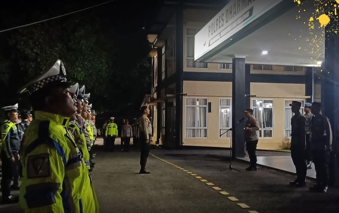 NARASI JURNAL.COM, DHARMASRAYA- Kapolres Dharmasraya AKBP Bagus Ikhwan, memimpin apel persiapan pengamanan malam Idul Adha 10 Dzulhijjah 1445 H-2024 M, di halaman Mako Polres Dharmasraya pada Minggu, (16/06/24), pukul 19.30 WIB.