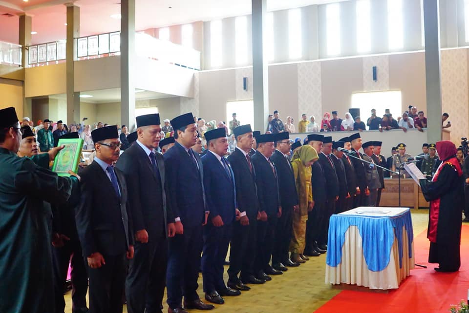 NARASI JURNAL.COM, DHARMASRAYA – Sebanyak 30 orang Anggota DPRD Kabupaten Dharmasraya ucapkan sumpah/janji jabatan dalam Rapat Paripurna yang diselenggarakan di Ruang Rapat Utama DPRD Kabupaten Dharmasraya. Pengucapan sumpah ini menjadi penanda telah dilantiknya Anggota DPRD periode baru sekaligus menandakan berakhirnya masa jabatan Anggota DPRD periode 2019-2024.