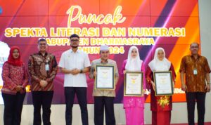 “Tiga rekor muri yang kita raih antara lain, penulisan pantun berbahasa daerah oleh siswa SD dan SMP terbanyak, kedua penulisan pantun berbahasa daerah oleh guru terbanyak dan ketiga, pelatihan numerasi olimpiade matematika tingkat kabupaten dengan jumlah peserta terbanyak,” kata Sekda lagi.