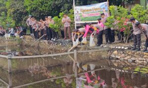 Dalam kegiatan ini, Kapolres Dharmasraya memimpin pelepasan sebanyak 2.000 bibit ikan nila ke dalam kolam ikan di lingkungan Polres serta penanaman 200 batang bibit singkong di lahan tidur sekitar asrama.