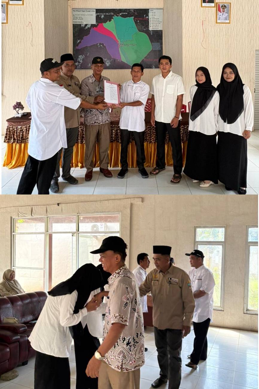 NARASI JURNAL, DHARMASRAYA — Camat Asam Jujuhan Mashuri Thaib melantik empat anggota Badan Musyawarah (Bamus) Antar Waktu Nagari Sungai Limau di Aula Kantor Wali Nagari setempat, Kamis (5/3/2026).